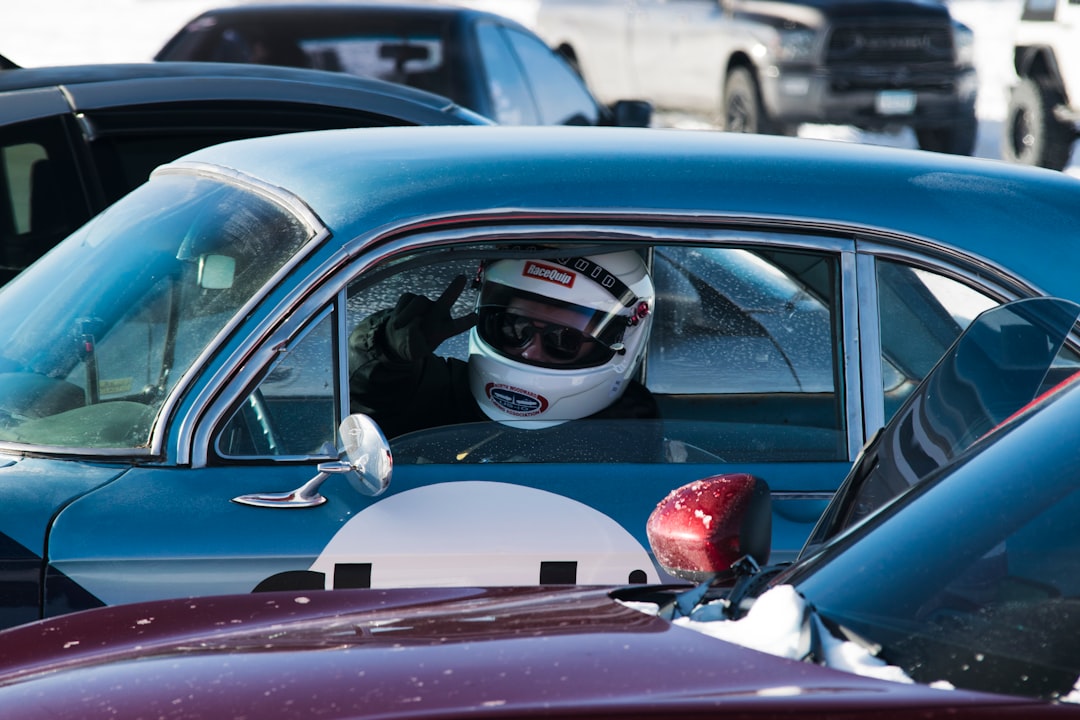 IceCross in Minnesota. Driver giving a "peace" sign.